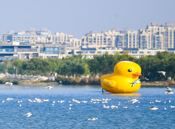 銀川老城秋日圖景 紅嘴鷗如期赴約 銀川老城秋日圖景 紅嘴鷗如期赴約